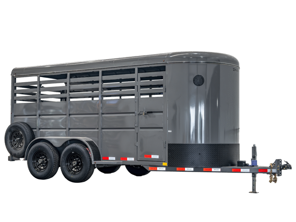 Built for the ranch, farm, and feedlot. Delco’s Bumper Pull Livestock Trailers are engineered to move cattle, hogs, sheep, and other livestock safely and efficiently. With torsion axle suspension, treated pine wood floors, full swing rear gates, and 6’6″ of interior height, these trailers are ready to work from day one. Choose from 6′ or 6’8″ wide configurations in lengths from 10 to 18 feet to match your operation.