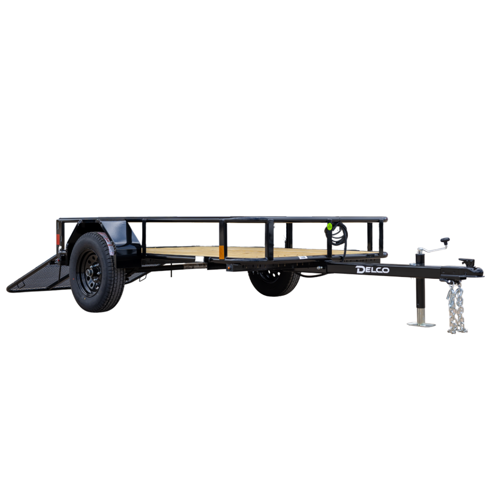 | Utility Trailer 60" Pipe Frame | | | | Single 2,000 lb Idler Spring — lightest utility axle Delco offers | | Treated Pine Wood Planking | |